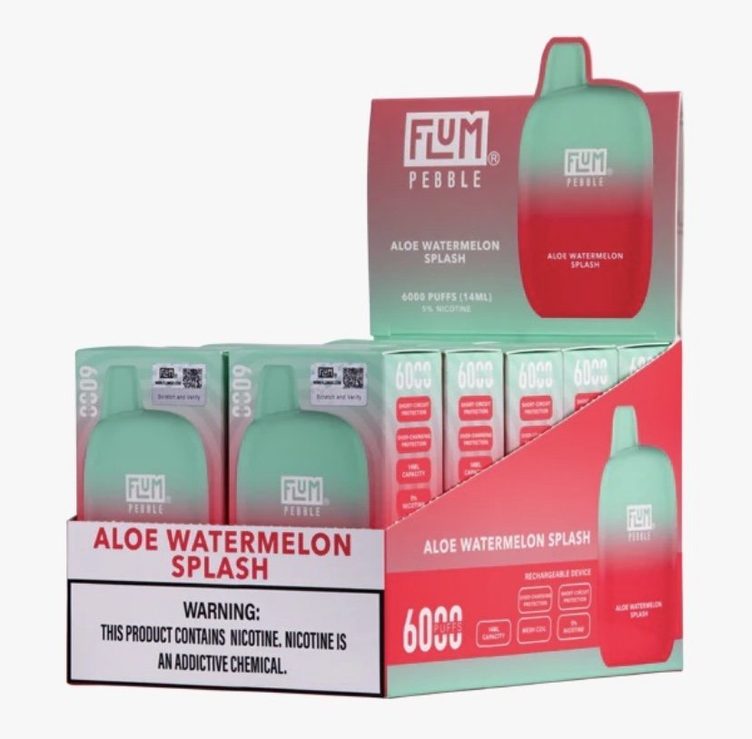 Check out the Flum Pebble 6000 Disposables 10-Pack Deal, offering a 14ml prefilled capacity, 6000 puff delivery, and utilizes 5% nicotine strength salts..