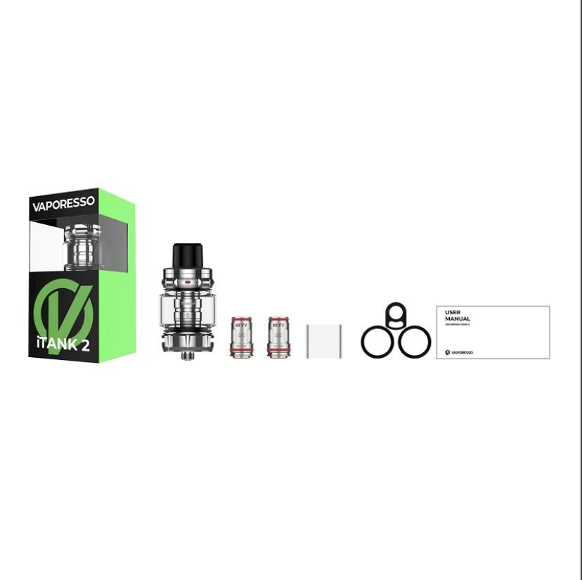 Explore the Vaporesso iTank 2 Atomizer, boasting an impressive 8mL e-liquid capacity, an auto-opening top-fill mechanism, and compatibility with GTi Mesh Coils, complemented by dual slot bottom airflow. Crafted from robust stainless steel, the Vaporesso iTank 2 combines sleek aesthetics with durability, ensuring you enjoy dense vapor clouds and rich flavor from your preferred eJuice.